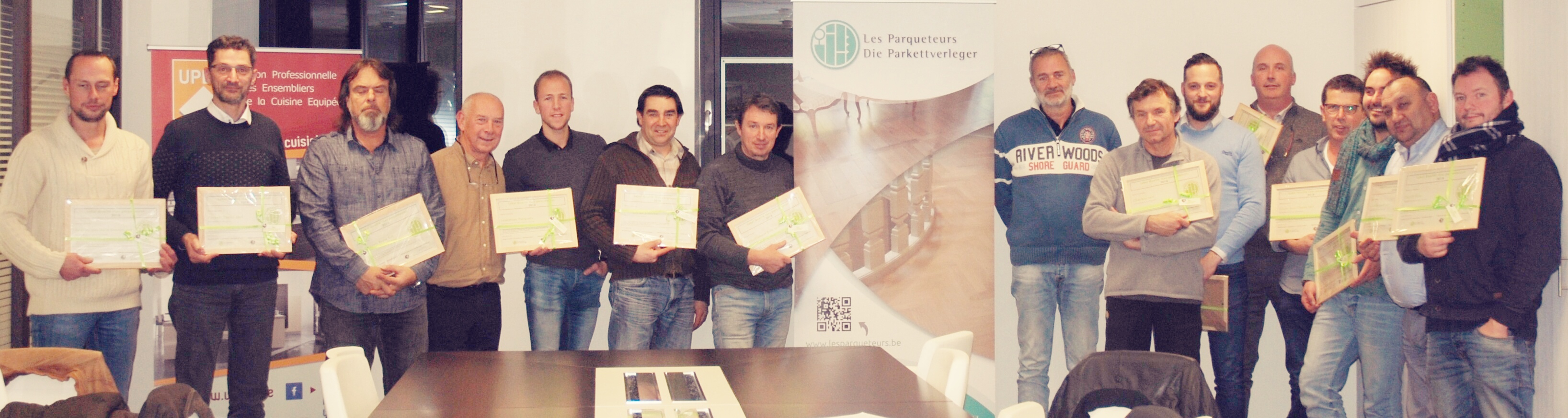 Les labellisés 2018 sont : A.D.E Parquets (Mr Demirkapu), Cherbai sprl (Mr Chable), Esprit Bois s.a (Mr Montoisy), Les Parquets du monde –BHE (Mr Harris), Mood for Wood (Mr Dortant), NaturElément Bois (Mr Sereno Regis), Parquets Buyse Eric (Mr Buyse), Parquets Drouven (Mr.Drouven), Parquet Simon Parquet Passion ( Mr Simon), Parquets Jean-Marie Girondin (Mr Girondin J-M), Parkett Theiss (Mr Theiss), Parquets Laermans (Mr Learmans), Schyns Jean-Claude sprl (Mr Schyns), TMB Euromat (Mr Marchal), L'artisan du plancher (Mr Lefebvre).