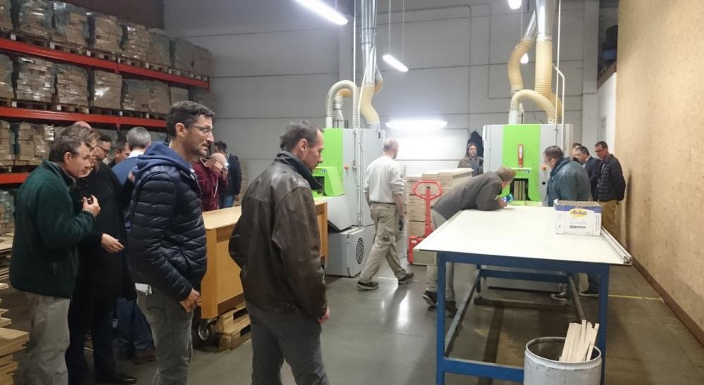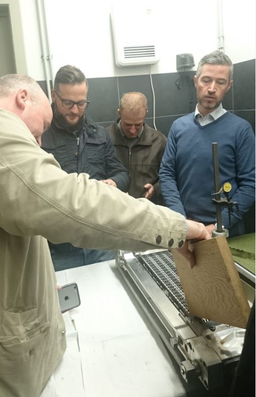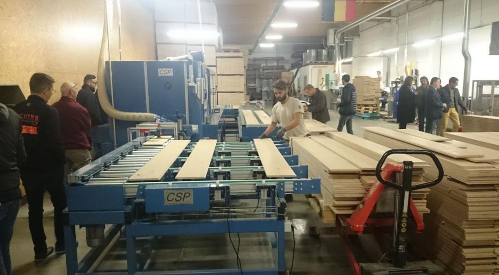 Les membres du GT ont visité les lignes de production des gammes «Classic & Master Line », parquet massif 6 ou 9 mm - largeurs de 7 à 24cm, et «Top Line» - parquet contrecollé 13 ou 18 mm - largeurs de 16 à 22cm mais également le site de stockage de Genk.