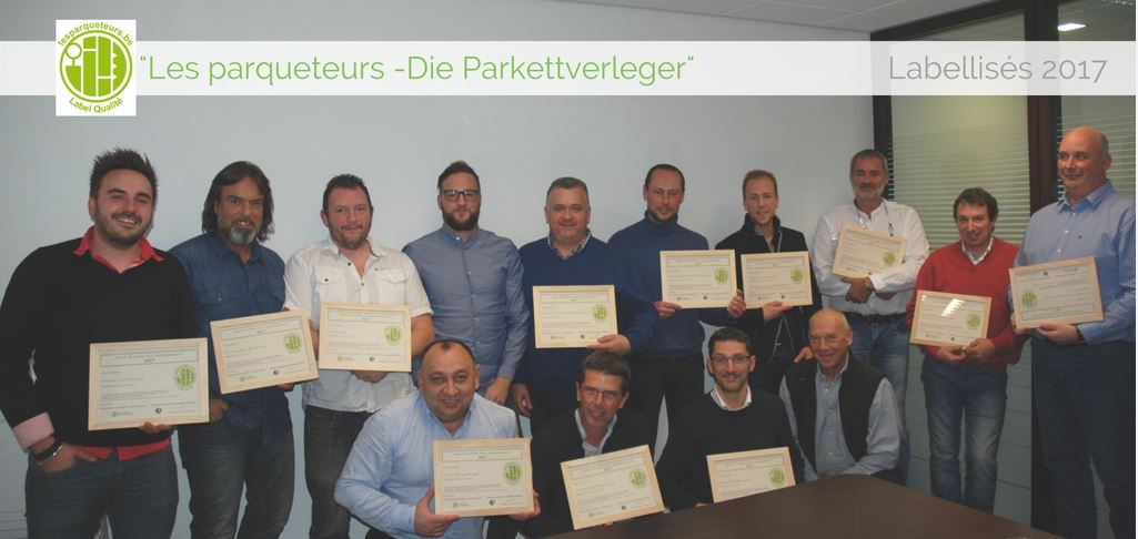Les labellisés 2017 sont : A.D.E Parquets (Mr Demirkapu), Cherbai sprl (Mr Chable), Esprit Bois s.a (Mr Montoisy), Les Parquets du monde –BHE (Mr Harris), Mood for Wood (Mr Dortant), NaturElément Bois (Mr Sereno Regis), Parquets Buyse Eric (Mr Buyse), Parquets Drouven (Mr.Drouven), Parquet Simon Parquet Passion ( Mr Simon), Parquets Jean-Marie Girondin (Mr Girondin J-M), Parkett Theiss (Mr Theiss), Parquets Laermans (Mr Learmans), Schyns Jean-Claude sprl (Mr Schyns), TMB Euromat (Mr Marchal).