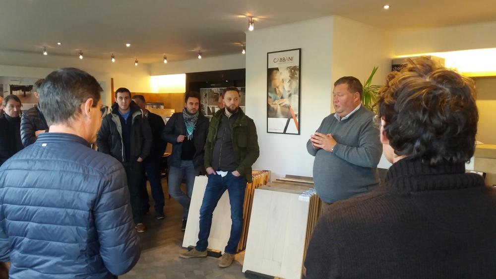 Les membres ont eu la chance de visiter le showroom et le site de production où sont fabriqués les parquets DUO-LINE (collage sur multiplex), les parquets massifs de 10 mm et les panneaux décoratifs.