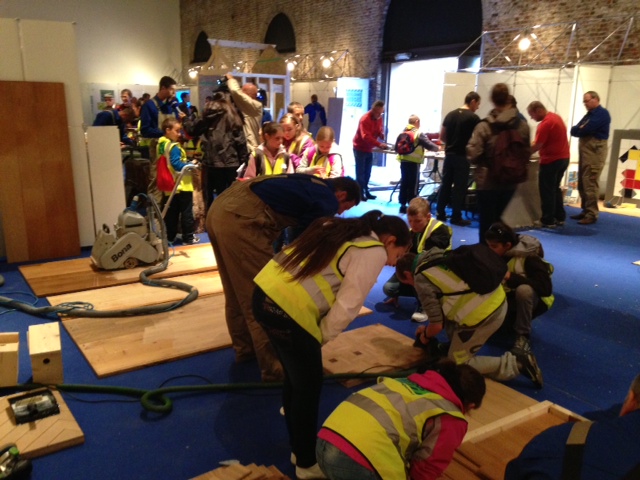 Durant ces deux jours de sensibilisation, le groupe de travail des parqueteurs proposait diverses activités sur leur stand. Pose clouée, pose collée, ponçage et mise en finition sont autant de facettes du métier du parqueteur qui ont été présentées aux jeunes. Ces derniers ont eu l’occasion de mettre directement la main à la pâte en testant les machines et produits utilisés quotidiennement par les professionnels.
